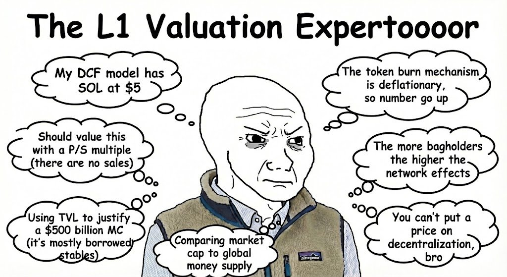 Intuitively, this makes sense. And by all indications, the Canton network is doing great (take with a grain of salt, since these indications are coming from massive CC investors). Yet the CC token is going straight down as well. Which, ironically, probably validates my thesis that L1 token valuations are primarily driven by social value rather than financial or utility value. How do I know? Because Canton Coin has NO social value. It’s not cool to be part of a private Wall Street cabal coin, so CC carries no social premium and therefore gets little to no credit for any other successes it may or may not be having.